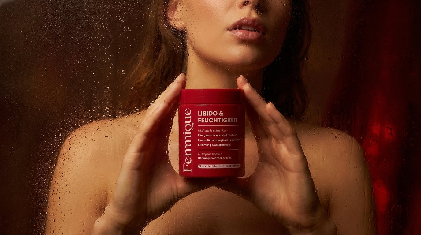 Die meisten Produkte setzen im Moment an. Femmique setzt früher an — dort wo Lust wirklich entsteht: in deinem Körper, deinen Hormonen und deinem Kopf. Täglich eingenommen baust du eine konstante Basis für mehr Verlangen, mehr Feuchtigkeit und mehr Nähe.